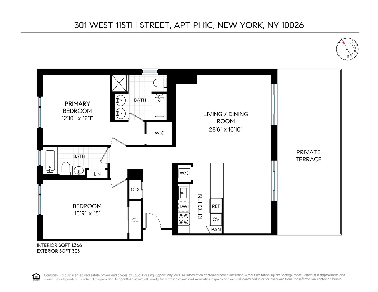 Welcome to Penthouse 1C at 301 West 115th Street. This home spans over 1,300 square feet, with east and west exposures and a large corner terrace that brings in southern and northern light. It pairs modern comfort with some of the best views in Harlem.